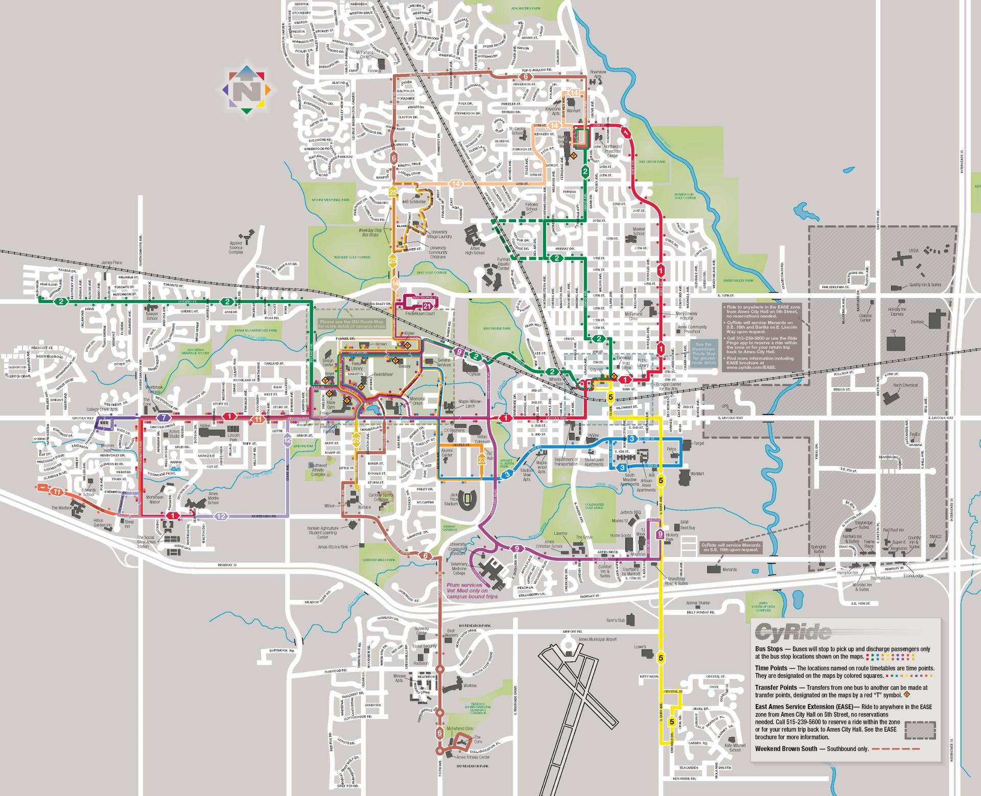 Ames Middle School, West Lincoln Way, ISU Campus, City Hall Downtown Ames, Ames City Library, Mary Greeley Medical Center, North Grand Mall |